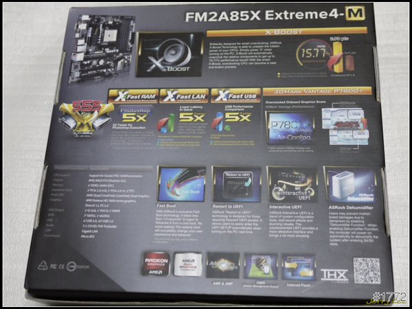 ▲外盒背面可以看到ASRock推出很久的XFast 555技術跟關鍵的XBoost技術