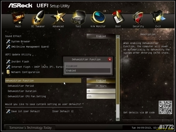 ▲Dehumidifier-就叫他除濕機好了,在台灣潮濕的海島型氣候最適合此功能了,在BIOS設定固定每幾小時就會自動開機讓風扇運轉,保持一定的乾濕度,尤其是長出遠門的朋友也很適用,這樣回到家中就不會發現電腦無法開機的窘境.