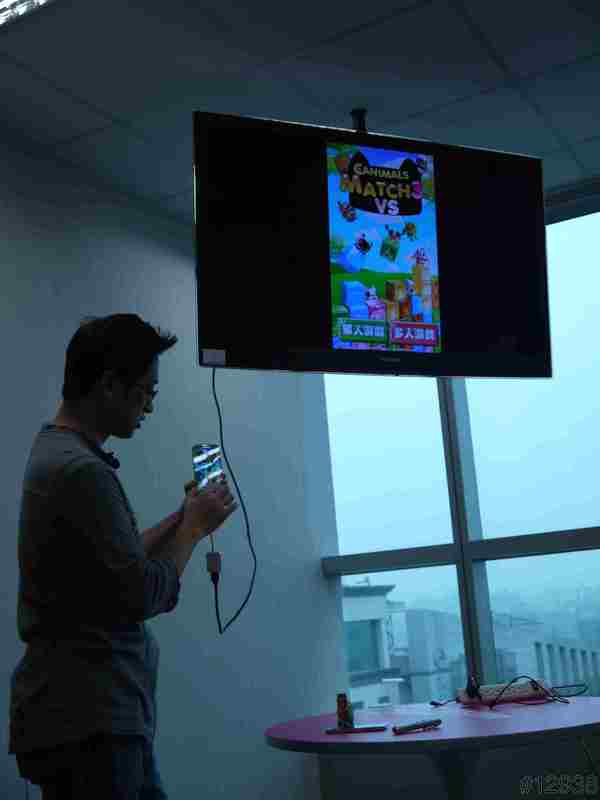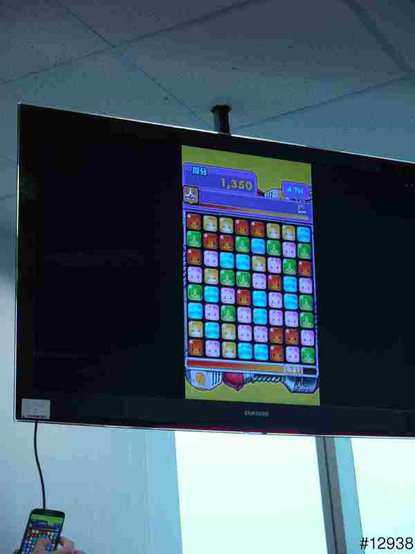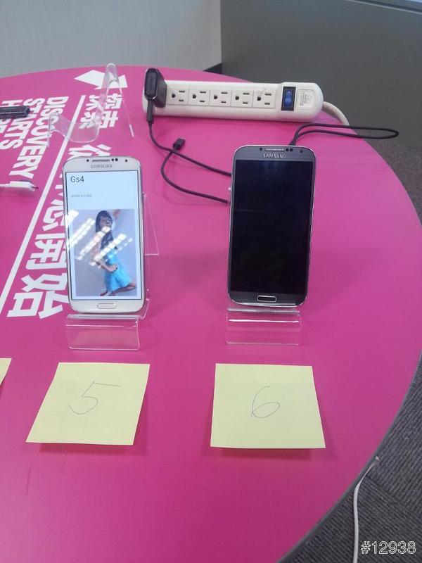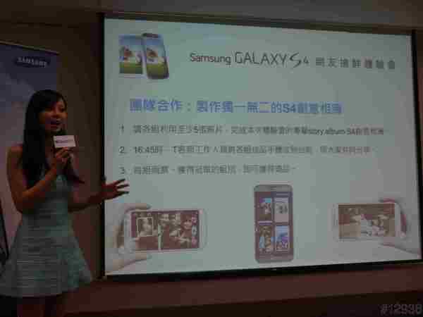 開始玩手機的功能,有踢足球(借位把女組員的頭當球),還有太想摸S4在S4海報旁邊