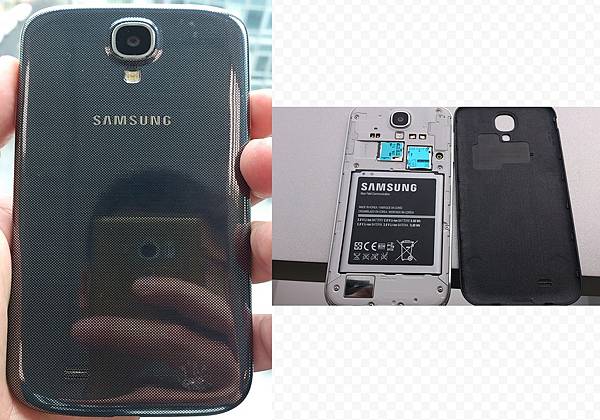 Galaxy S4 背面材質沒有很重的塑料感, 採用的是聚碳酸酯(Polycarbonate), 除了質地更輕外更是耐撞, 不小心摔到都不怕的唷 !! 如同Samsung前幾款智慧型手機, 此次S4同樣採用可拆換電池的方式, 出遠門旅遊時可隨時更換電池, 永遠不怕手機沒電拉, 超貼心, 超讚的 !!