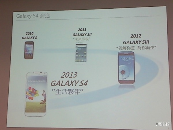 三星的銀河旗艦系列,現在也開始每年固定發表了,這次已進化到第四代,台灣一般稱S4,若以機號,我看手機上的編號是I9500,若是大家有印象的話,S3的編號應該是I9300,可見韓國人受到中華文化的影響是很大的,把華人普遍認為不吉利的數字"4"跳過。不過是否如此,也未必合理,畢竟,台灣還是稱作S4。實際理由如何,看有否網友來補完一下。