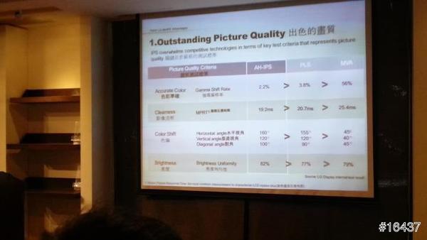 AH-IPS 的 色彩準確、伽瑪偏移率 為 2.2%、影像清析、動態反應時間為 19.2ms、色偏、水平視角160°、垂直視角120°、對角100°、亮度、亮度均勻性 為82%,更較同性質技術效能上更為提升。