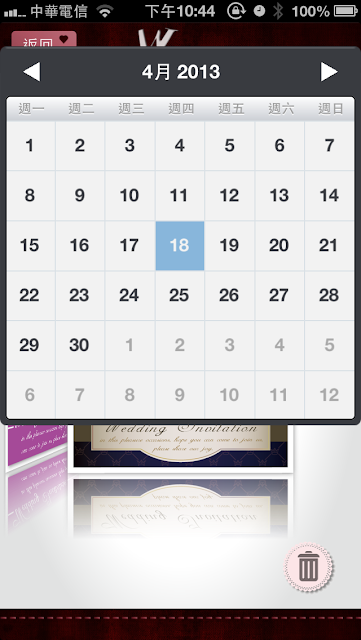 選好新人結婚的日期,把下載密語輸入,就可以在右邊的箭頭按下載喜帖囉