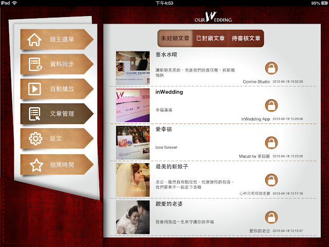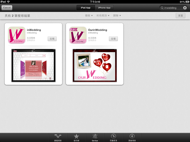 軟體名稱叫做「愛婚享」,這個沒有在App Store上架,直接由他們的連結下載App到你的裝置上觀看(跳過App Store的手續,達到每個人不同的客制化要求)