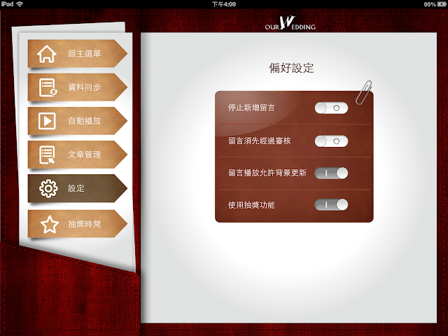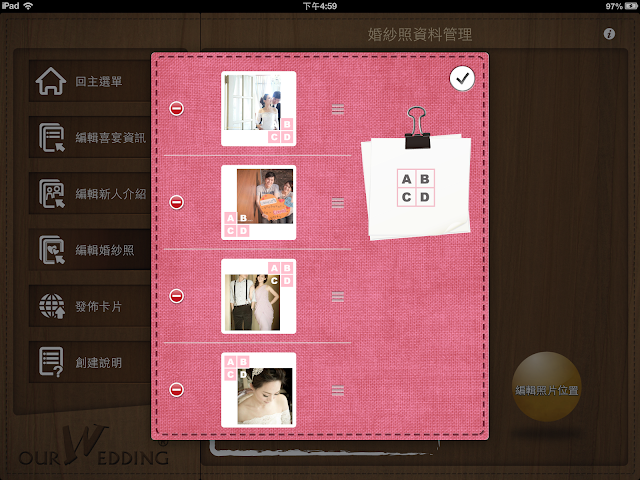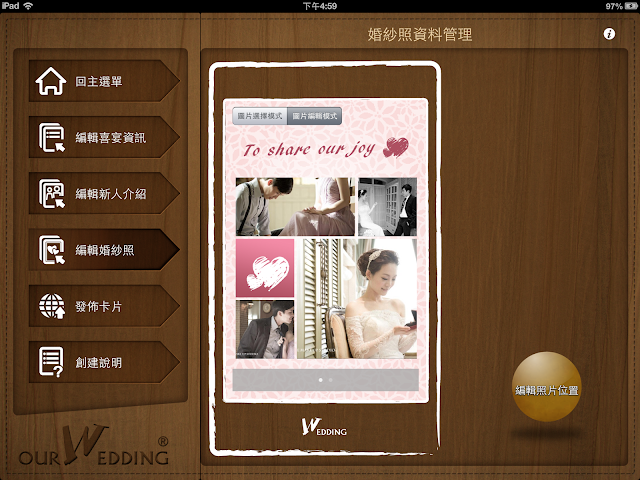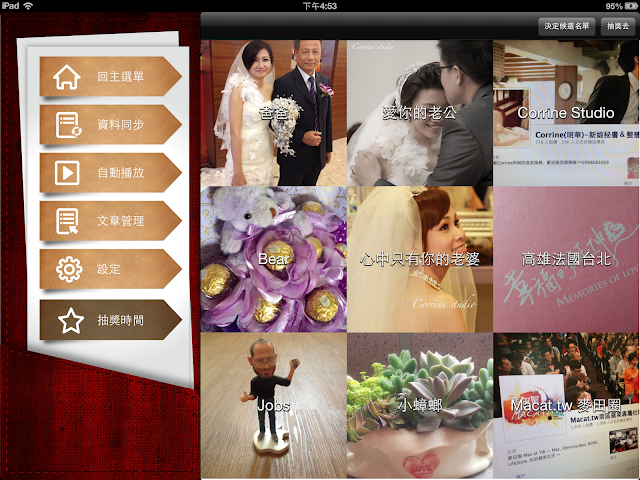 因為其他家的Android平板規格太多,也不易做設計,所以這個團隊希望以iPad來展示為主,比較不會發生變數,畢竟婚禮就一場而已,出差錯可是很麻煩的啊