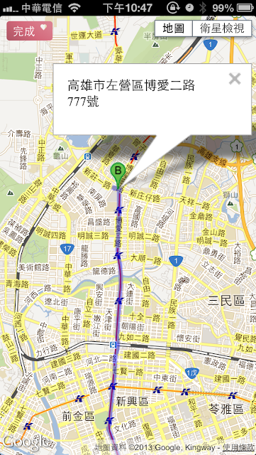 點一下地圖Map的圖案,就可以看到從你現在的位置到婚宴會場的路線圖(厚,真的很方便喔)
