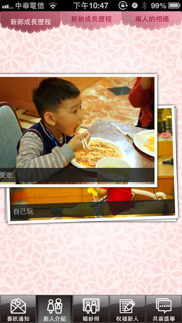 喜帖就會馬上在你的iPhone上面,秀出時間和地點,點進去就可以看新人的美美婚紗照