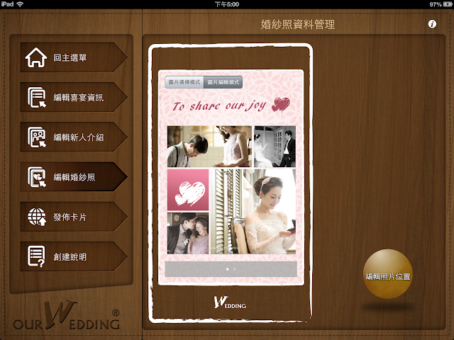 我們要從這裡先建立新人的資料,包括婚宴地點、婚紗照片等。