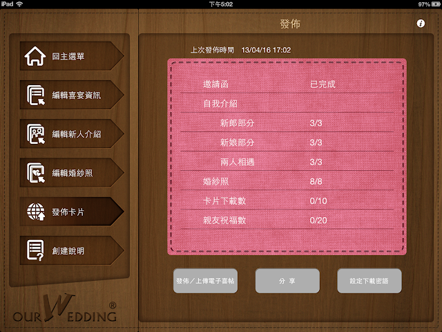 發佈完之後,就可以分享電子喜帖給親朋好友囉