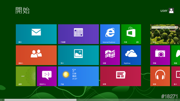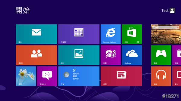 Windows 8開始畫面,與RT相同使用同樣的動態磚設計