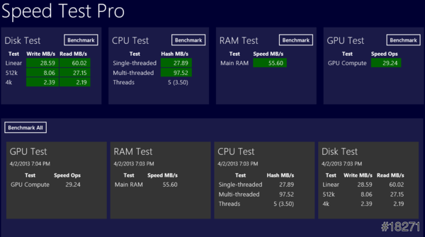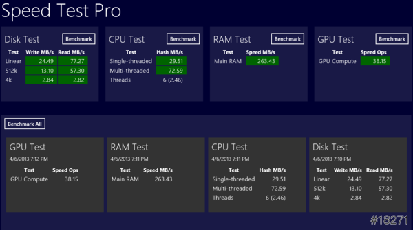 以下使用Windows 8與RT中少數共通Speed Test Pro APP軟體來測試比較