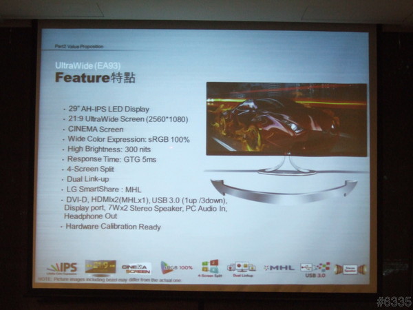 ▲29EA93-P配合sRGB >99%色域,有效提供全高清解像度(LG還真老實,sRGB>99%不就近似於100%?)