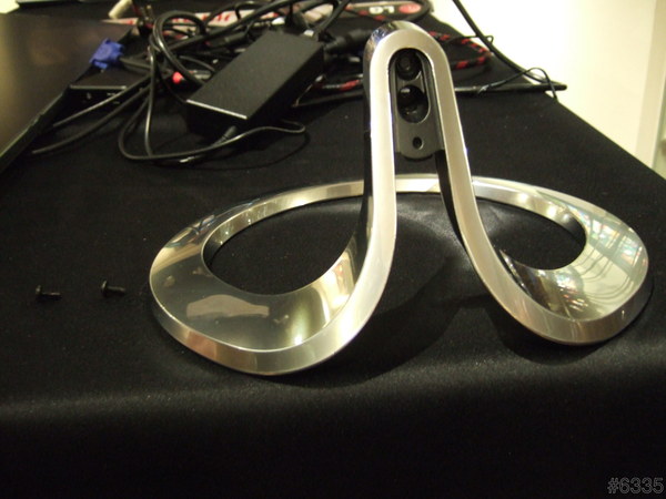 ▲29EA93-P下方是一個很有質感的銀色鍍鉻支架,連接螢幕以兩個螺絲鎖住。