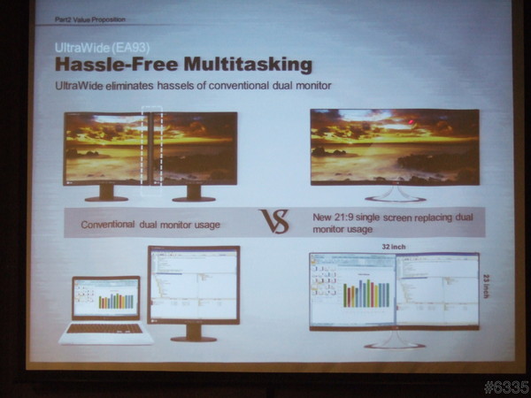 ▲29EA93-P,AH-IPS家族唯一21:9超寬螢幕比例,請注意看,29吋的面板這樣的長寬比例,會讓人覺得螢幕水平寬度非常寬,而垂直高度很短。而且這下方支架是無法調整整個螢幕高度的,所以要入手EA93前一定要以擺放螢幕的桌子及椅子高度做重要考量,不然螢幕再好,拿回家放才發現眼高手低,那就很不吸死了(台語)