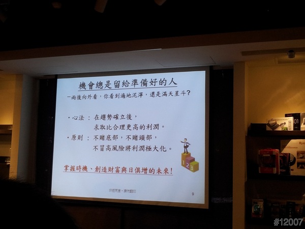 接續著由理財專家林成蔭,來教導大家如何「風險降低、錢淹腳目、貧血復甦」,從美、歐、日寬鬆貨幣政策等等,當然最後也運用到21:9 Ultra Wide 超寬螢幕液晶顯示器的多重分割、Dual Link-up、MHL(MOBILE HD LINK)的體驗,算是結合理財及實體的應用。