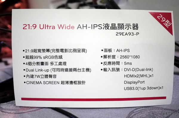 特色:21:9超寬螢幕(完整電影比例呈現)、SRGB 100%色域的高色彩效能、4個分割畫面 多工處理