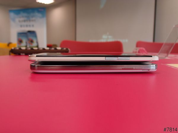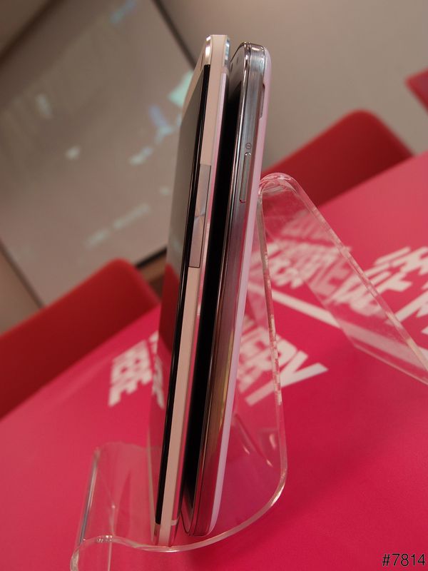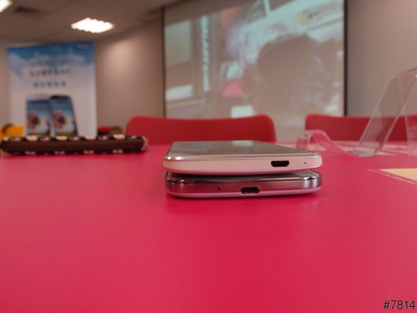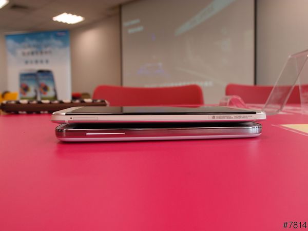 ▲手機大小比較----ONE看起來比S4瘦一點。