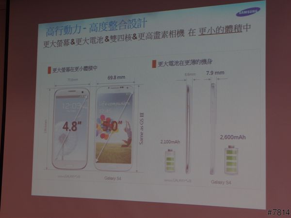 從上圖看得出來S4與其他家的規格的差異最大的部分在於處理器以及電池容量