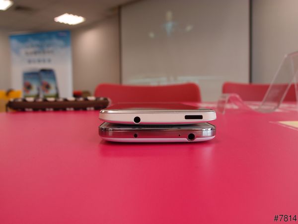 ▲手機上方----ONE的電源鍵在左方,耳機孔在右方;S4耳機孔與ONE相反