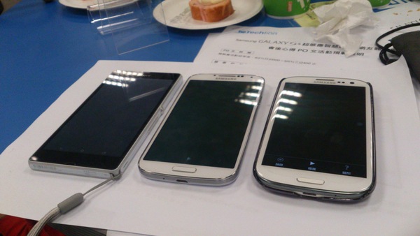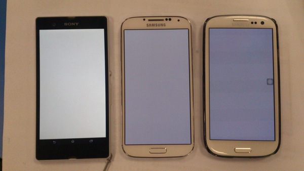 (左 Sony Xperia Z,中 Samsung Galaxy S4,右 Samsung Galaxy S3)