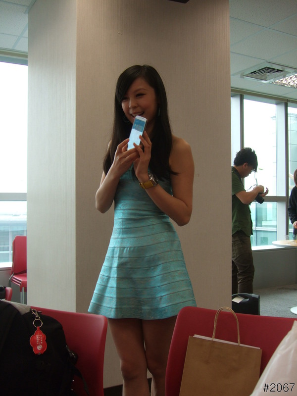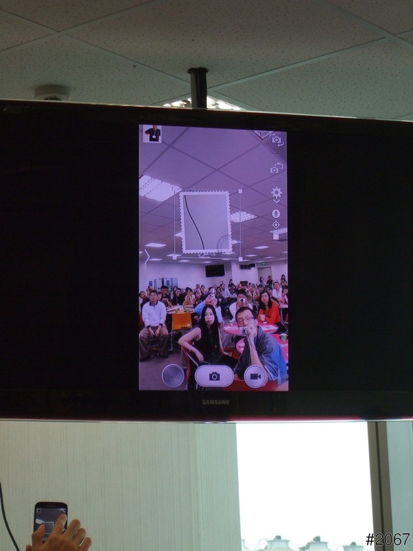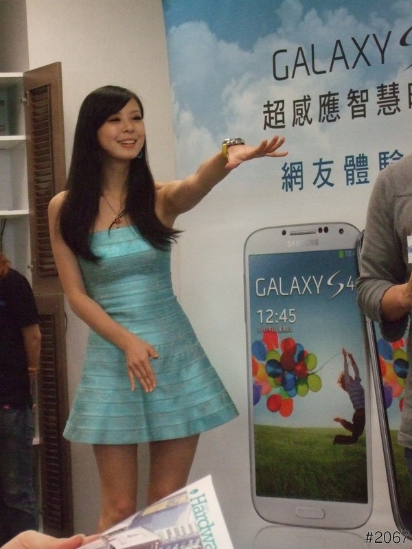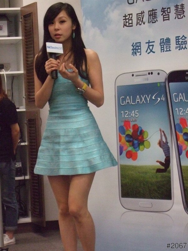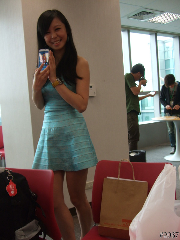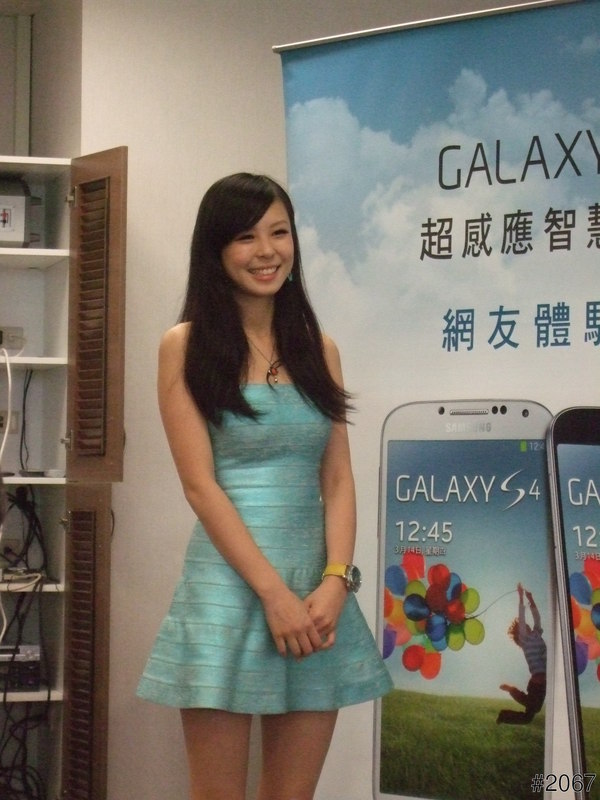 回坐位休息時美麗的主持人大方的拿起手機S4讓我們拍照.