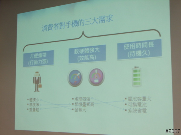 消費者對手機的三大需求(但卻彼此有衝突,要體積小又要螢幕大,到底是要大還是要小...)