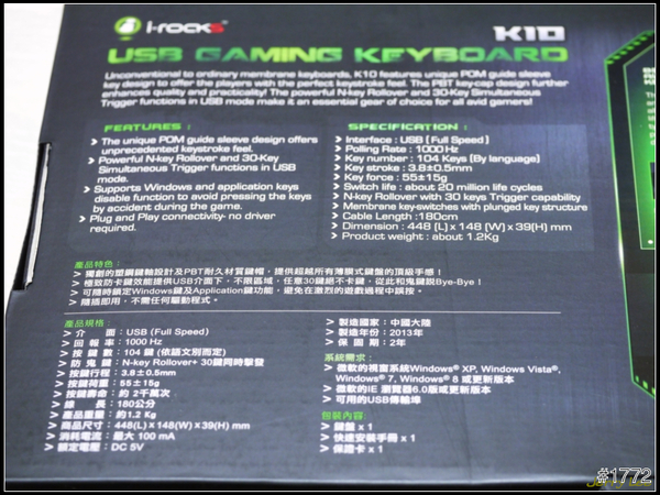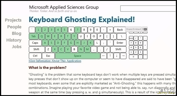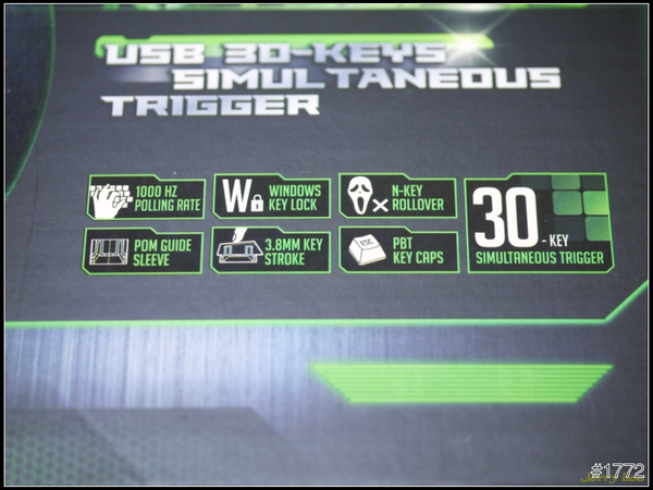 ▲為了玩家設計的30-key Rollover,也就是防止多達30鍵的鍵位衝突,雖然人們只有10根手指頭,但是當玩起遊戲或是辦公速打時,就不會卡鍵了.