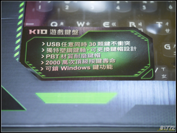 使用之後,也發現與現在的鍵盤敲擊的感覺大為不同,採用塑鋼鍵軸提升了敲及鍵盤時的回饋力道,增加鍵軸的使用壽命,還有支援30鍵鍵位無衝突設計,讓我玩起遊戲不會發生卡鍵問題,防"windows"鍵功能夠在遊戲中防止誤觸,鍵帽的PBT材質也可以延長使用壽命,鍵盤的字體也是特殊設計的酷炫感.