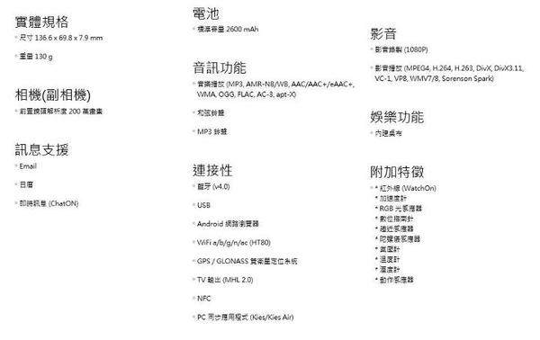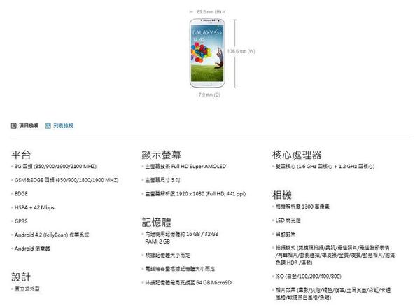 在進入活動前,簡單先表列 GALAXY S4 規格表 (引用自三星官網)