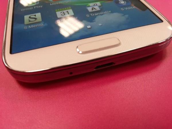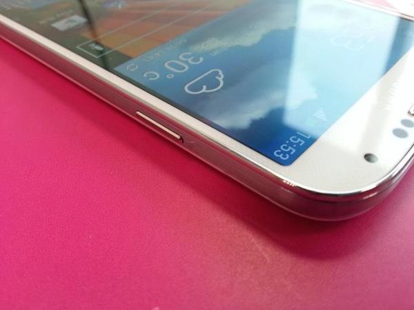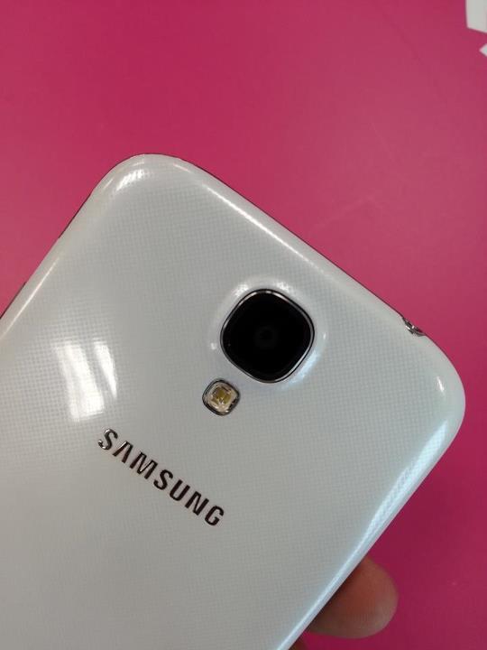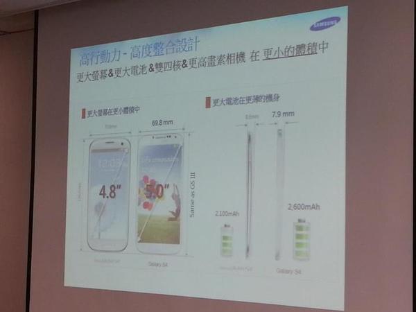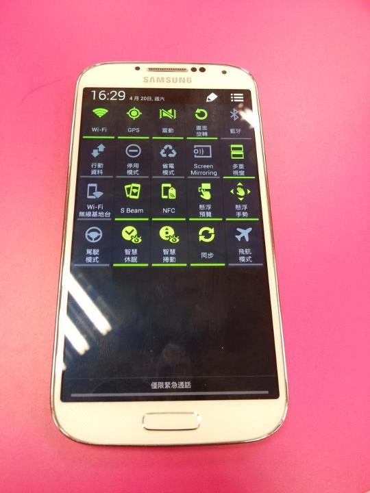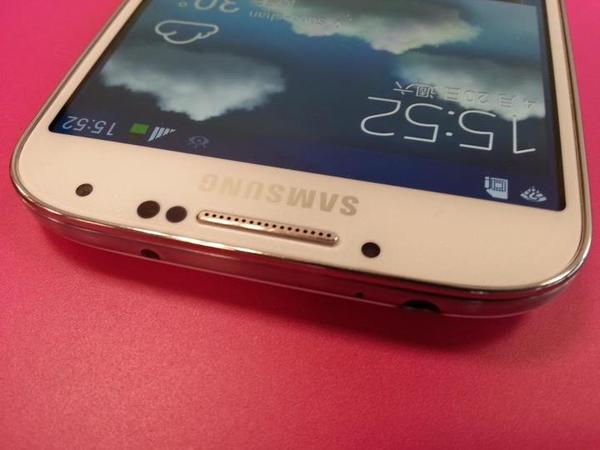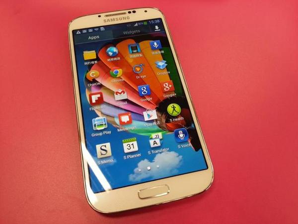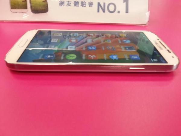 正面先來一張,主螢幕採 1920x1080pixels、1670萬色、5吋S-AMOLED,尺寸較大,而整體弧度設計,也許看慣了S3,反而更能接受 S4 的造型設計。
