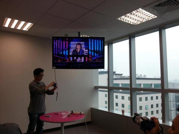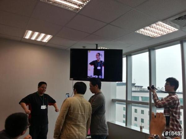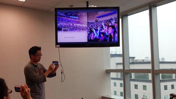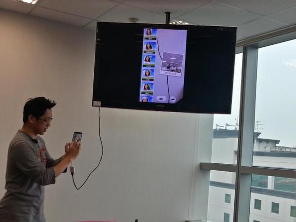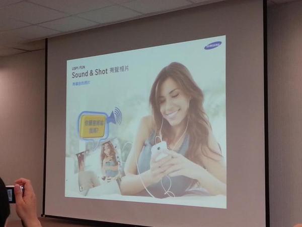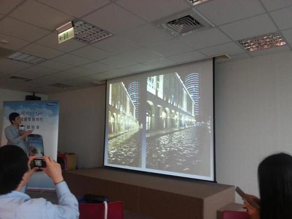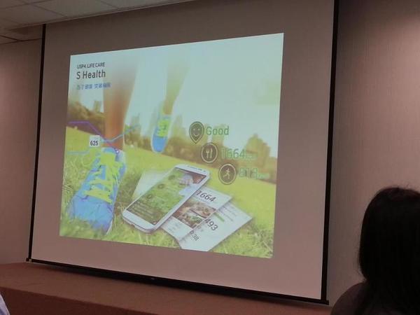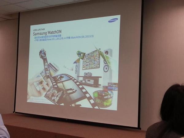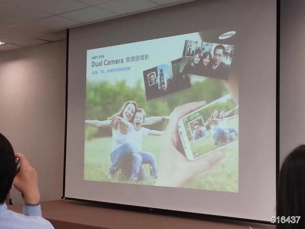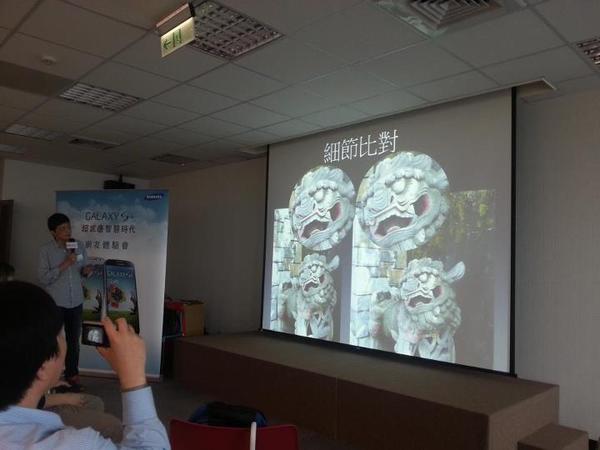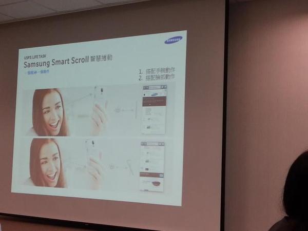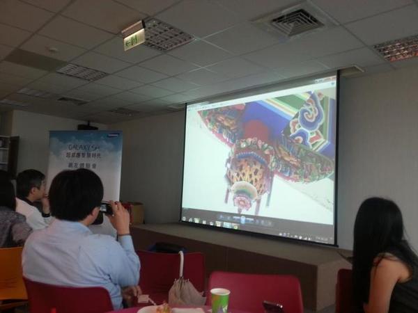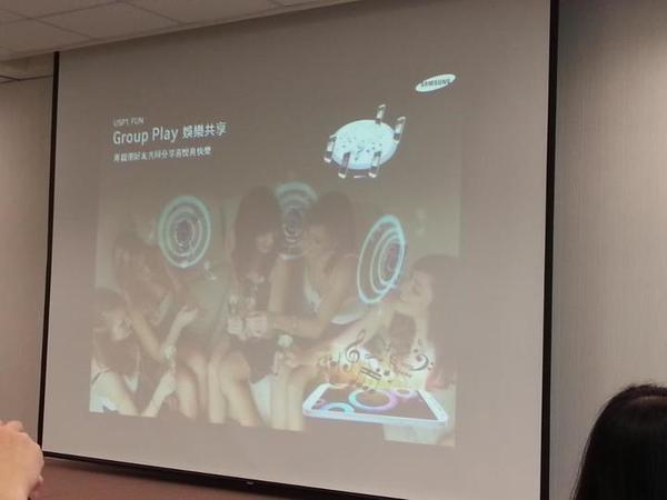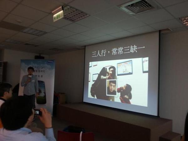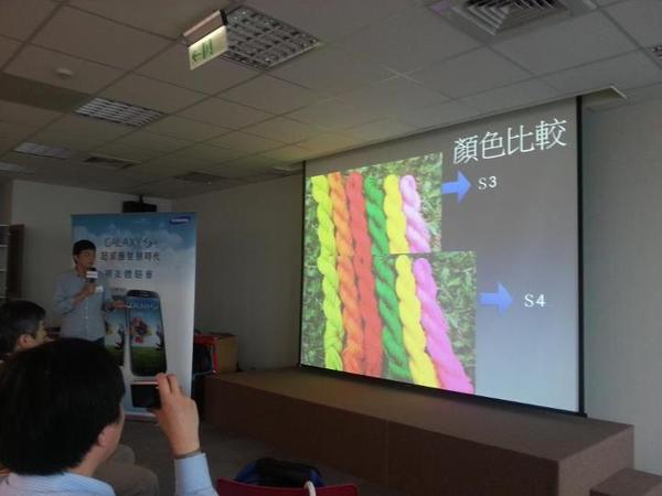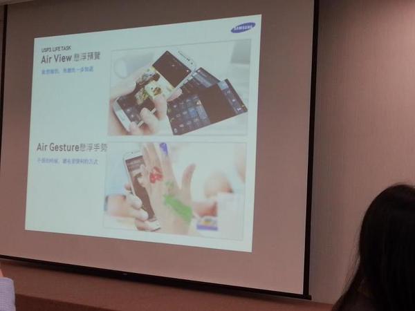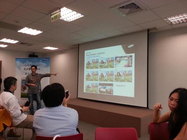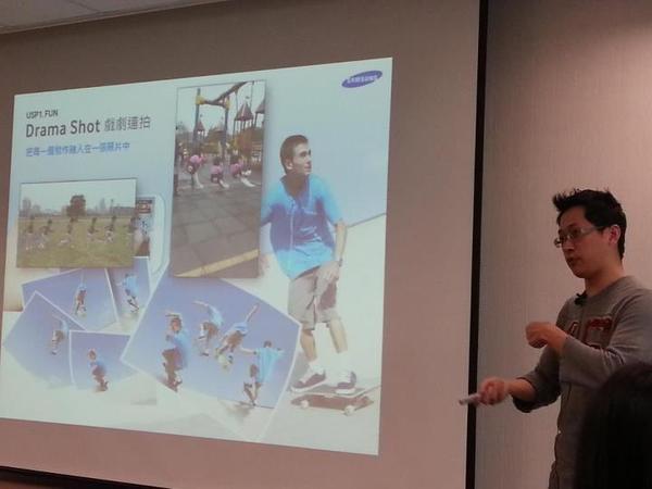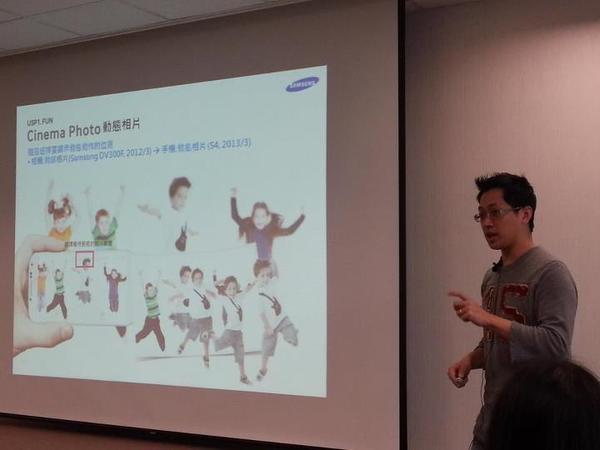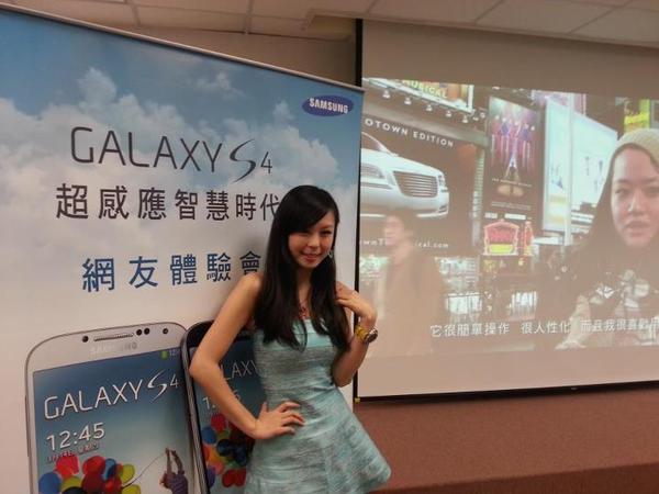 美麗的主持人Iris 也很大方的供小組拍照,應用在 S4上的創新功能。