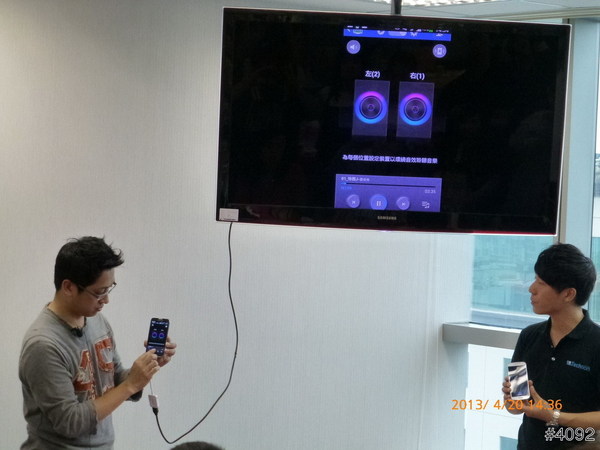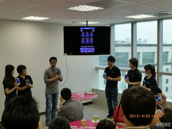 ▲ Eric 為我們實際解說 Group Play 娛樂共享如何串聯8台手機,同時播音樂、遊戲~超酷!