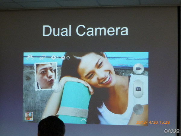 ▲我與同桌同好一起自願上台體驗 Dual Camera 雙鏡頭拍攝!