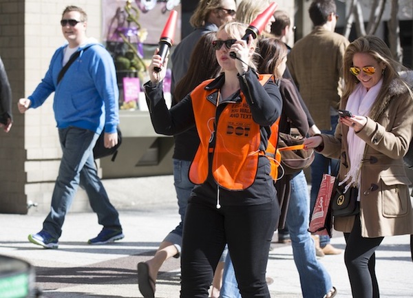 低頭族嚮導,你玩手機我帶路! 生活 · Twiggy · 發表於 2013-05-02 14:25 · · 檢舉 列印版 twitter plurk 8.0千閱讀次數 隨著科技產品的蓬勃發展,現代人在路上常常都成了低頭族,一不小心可能就會撞到花盆或是電線杆,這時候如果有人可以專門幫你帶路的話,那該有多好? 目前 Improv Everywhere 就跟 Buzzfeed 聯手,在紐約推出專們輔助低頭玩手機、平板電腦的導盲人活動,他們請來一群人身穿橘色背心擔任導盲人跟扮演低頭玩手機的人,一起在街頭上行走,並試著邀請真正的紐約路人來看看有沒有上當。 資料來源 1 個人說讚 收藏 快速回應 引言回應 登入來回應 header home