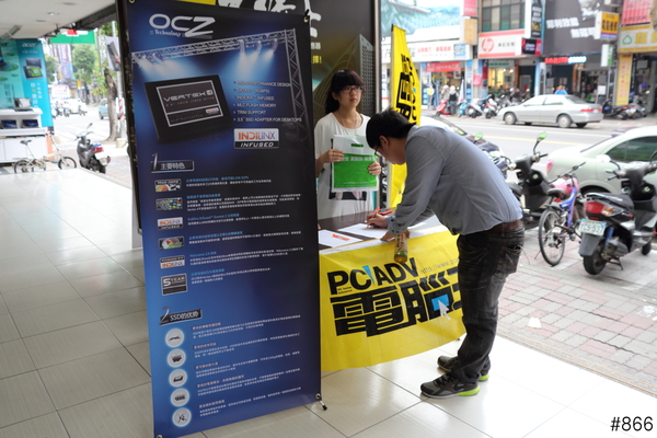 先來到簽到處簽到~在簽到處旁立了此次體驗會廠商的OCZ Vector SSD介紹立牌,