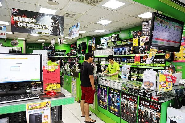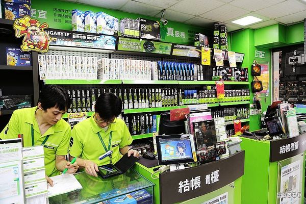 ▲欣亞高雄建國總店一樓門口,擺了很多電腦商品。