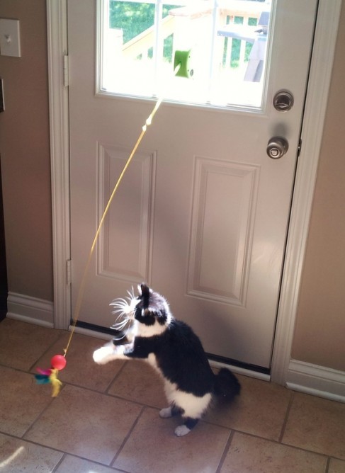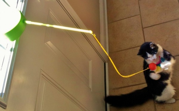 有養過貓咪的人都知道,貓咪對於高掛的玩具總是有種莫名想把它抓下來的慾望,所以就有許多養貓主人喜歡買逗貓棒來鬧貓咪玩,現在更有廠商開發出太陽能逗貓棒,就算主人不在家,貓咪還是一樣可以玩的很開心。 這個太陽能逗貓棒,設計有小型太陽能板跟吸盤,玩家可以把吸盤貼付在玻璃門上讓太陽能板吸收太陽能而運作,之後逗貓棒就會上下左右的移動來吸引貓咪注意。 ▲太陽能逗貓棒設計有吸盤跟小型太陽能板來吸收太陽能。 ▲使用時必須把吸盤貼在能吸收到太陽光的玻璃上。 ▲之後就可以開始逗貓玩了! 2 個人說讚 收藏 快速回應 引言回應