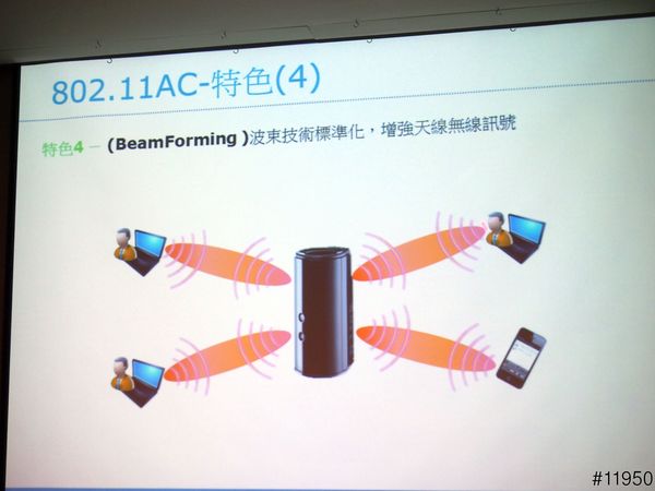 ▲▼802.11ac還有一項特點就是支援波束技術邊準化,此技術可以依各無線設備所在位置調整發射功率,使每位使用者都可以有最佳的無線體驗