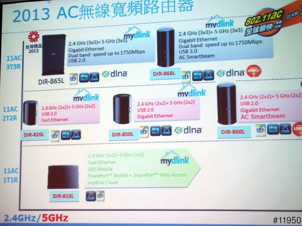 ▲D-Link 802.11ac分享器產品線,從中階的1發送1接收天線到高階的3發送3接收天線都有包含到,消費者可以自身需求加以選購