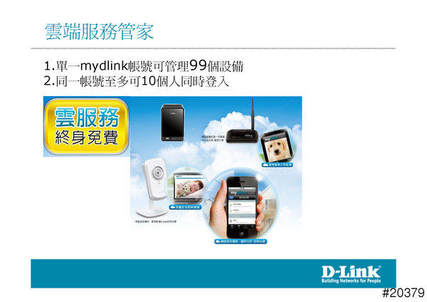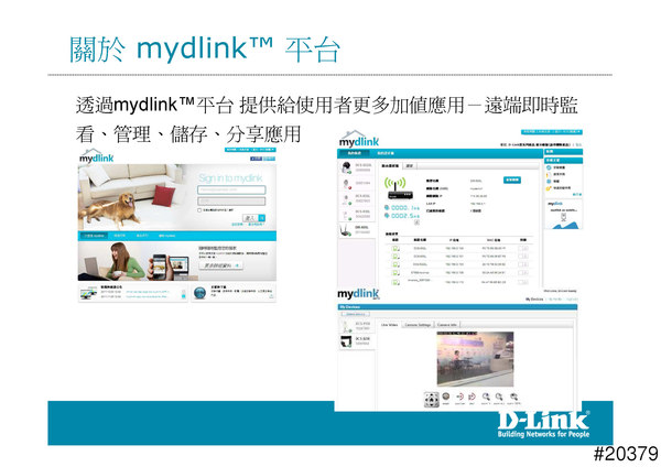 透過mydlink平台提供給使用者更多加值應用-遠端即時監看、管理、儲存、分享應用