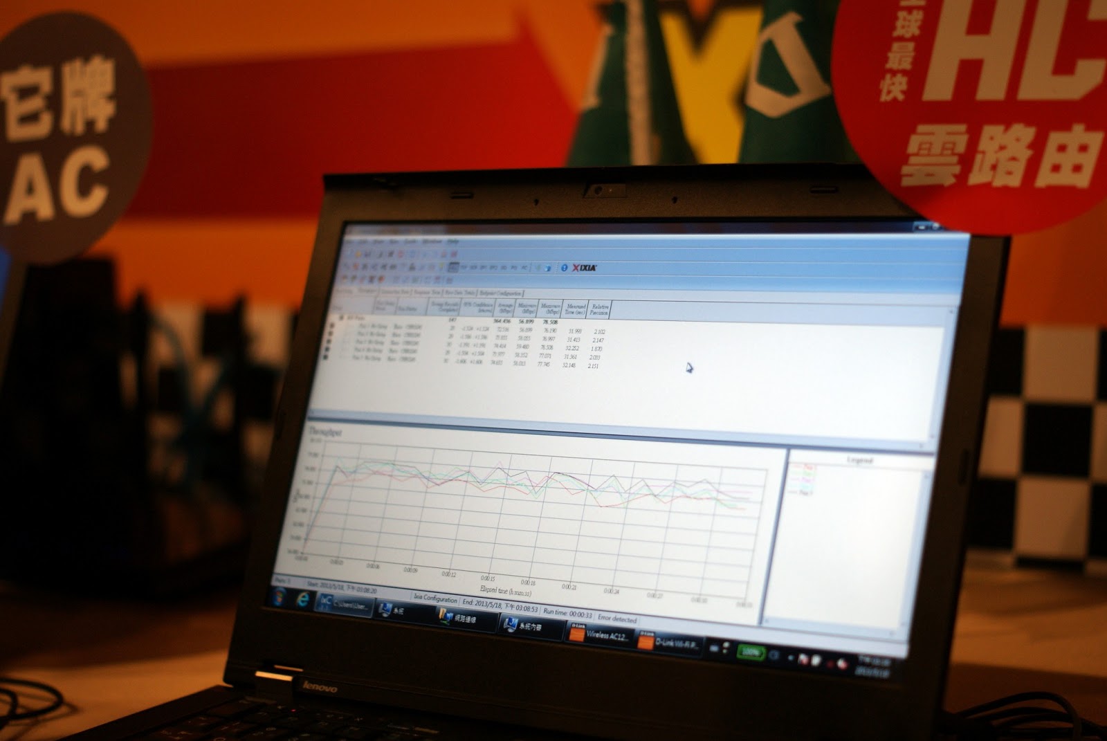 ▼ 首先要體驗的就是 11ac 的效能,最引人注意的就是這套 IxChariot 網路頻寬效率專業測試軟體,才能清楚的看出 11ac 與 11n 的效能差異。產品經理 Emma 跟大家說這套軟體要價一萬美金,而且只能使用七天,大家當場傻眼。不過我想應該是正式版原價一萬美元,但是現場是下載試用七天吧!