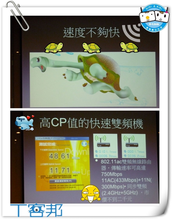 上半場透過專家Emma的講解和達人柏青哥的分享,一個坐而言,一個起而行,帶大家認識802.11ac的世界中,要進入802.11ac世界中,絕對要有絕佳的裝備來輔助,這絕佳的裝備是什麼?專家和達人異口同聲的說︰「絕對是友訊科技(D-Link) for 802.11ac 全球最快路由器」!