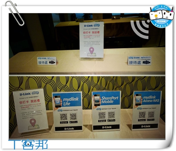 【▼】報到完了之後,當然不可錯過的就是打卡送好禮,這次打卡好禮是D-Link友訊科技2013雲世代宅客愛地球演唱會門票;另外主辦單位也貼心的準備QR-Code,讓大家方便安裝體驗會當中會用到的App,不論您的行動裝置是IOS或是Android系統,統統都支援,由左至右分別是mydlink Lite、SharePort Mobile及mydlink Access-NAS。