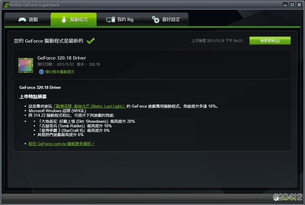 驅動程式更新更簡單,未來只要有新版驅動就會立即提醒安裝,並顯示新版驅動進步摘要!