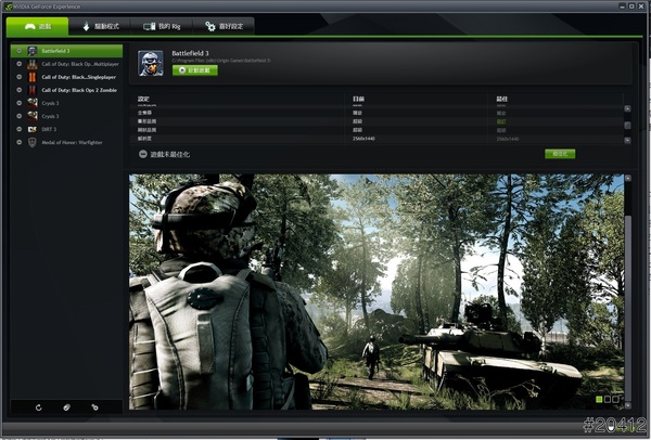 接下來就是遊戲玩家最常遇到的效能設定問題,遊戲需求不盡相同,除非玩家本身對遊戲十分了解,不然難以調整到最佳狀態。為了提升玩家的遊戲樂趣,NVIDIA推出GeForce Experience遊戲優化軟體,結合了NVIDIA雲端技術,會自動偵測已安裝於電腦中的遊戲,並連結雲端伺服器之後會依照電腦硬體設備,回傳遊戲最佳設定至玩家的電腦中,玩家只要點選最佳化按鍵後啟動遊戲(在GeForce Experience內啟動),如此一來就能同時擁有流暢與畫質的絕佳體驗!