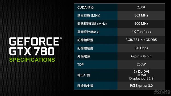GeForce GTX 780技術規格,簡單來說就是GeForce TITAN的兄弟!
