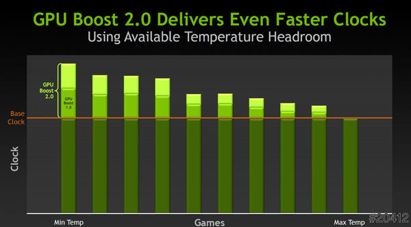 GPU Boost 2.0的電壓與溫度幅度更大,效能表現更優異。