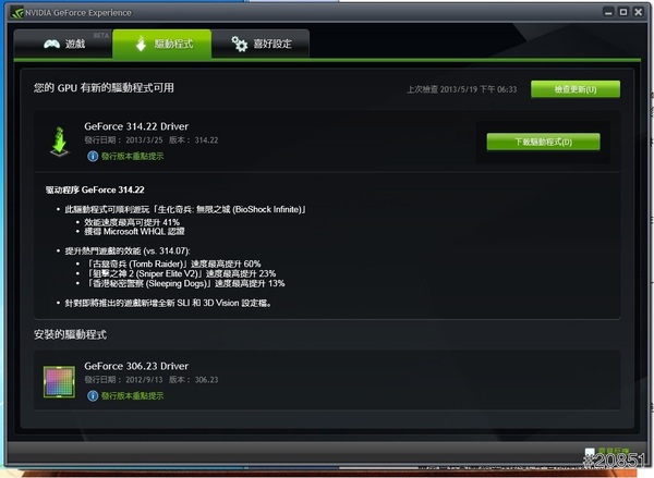 ◎驅動程式頁面則會自己查尋是否有最新驅動版本及更新項目為何,像我這樣的懶人來說,相當的方便.