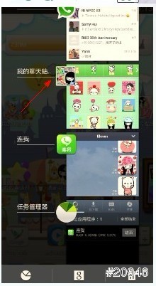 - 完成分享后,如果不能返回聊天貼紙簿。長按Home鍵,可調出手機的任務管理器。在管理器的頁面內,選擇聊天貼紙簿,就可以正常返回了哦。