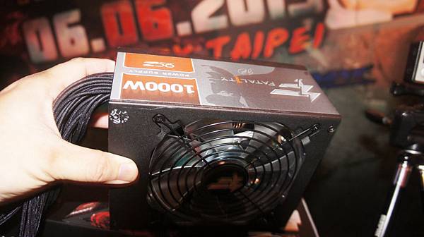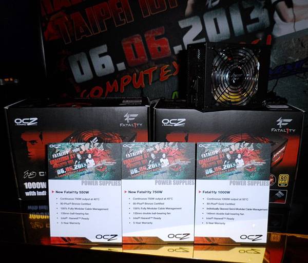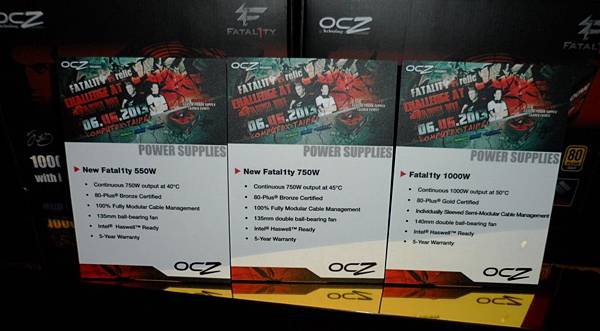 【▼】專為電競而生的OCZ與FATAL1TY合作的CHAMP1ON系列電源供應器(系列分為1000W、750W以及550W三種不同的瓦數規格,而發表會現場所展出的則是具備80PLUS金牌認證的1000W電源供應器)!冠軍加持~紅黑酷炫配色加上紅光!對於年輕族群的吸引力一定非常巨大!